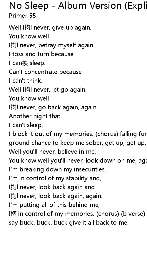 | Song | No Sleep - Album Version (Explicit) |