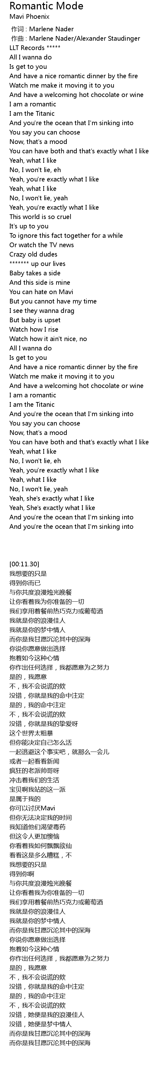 | [00:16.33] | And have a nice romantic dinner by the fire |
