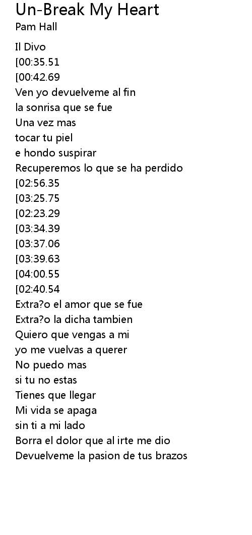 | [03:51.88][03:34.39][01:18.13] | Borra el dolor |