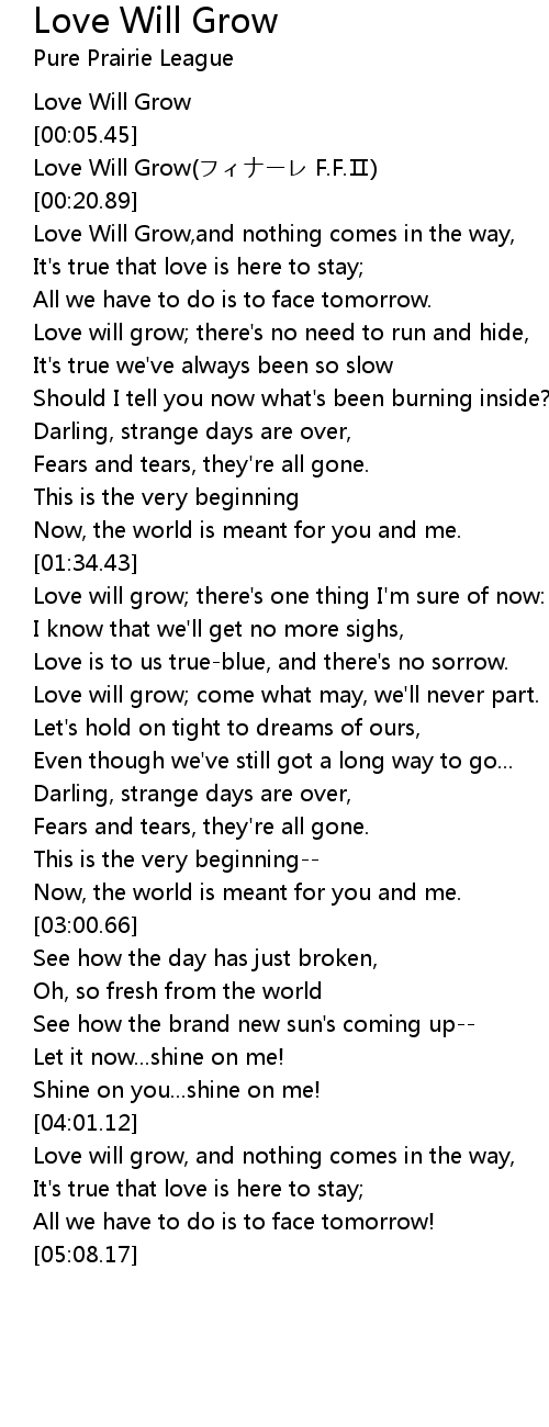 | [00:24.13] | Love Will Grow, and nothing comes in the way, |