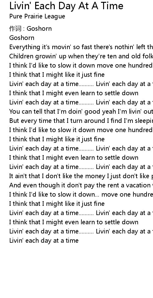 | Livin' each day at a time.......... Livin' each day at a time | |