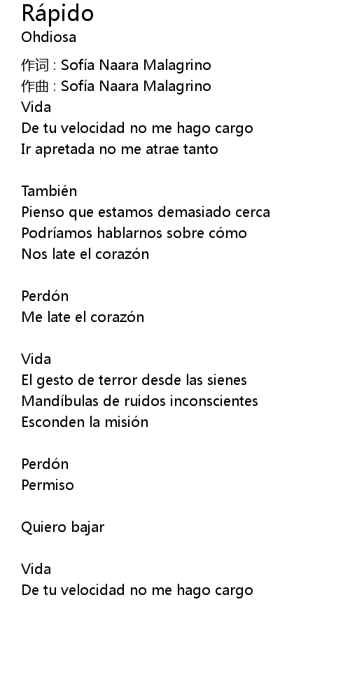| 作词 : Sofía Naara Malagrino | |
