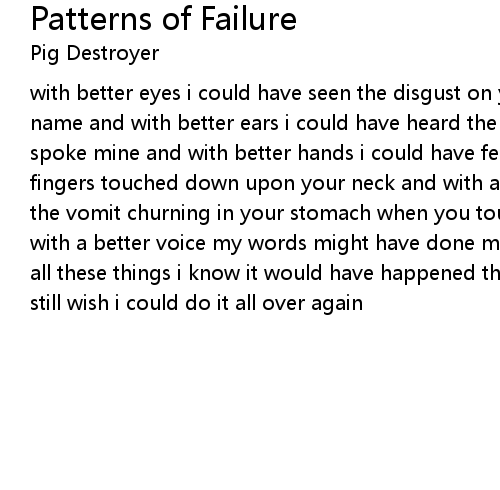 with better eyes i could have seen the disgust on your face when i spoke your name and with better ears i could have heard the disgust in your voice when you spoke mine and with better hands i could have felt your skin crawl when my fingers touched down upon your neck and with a better nose i could have smelled the vomit churning in your stomach when you touched me out of pity and perhaps with a better voice my words might have done more than flatter and yet even with all these things i know it would have happened the same way because even now i still wish i could do it all over again |