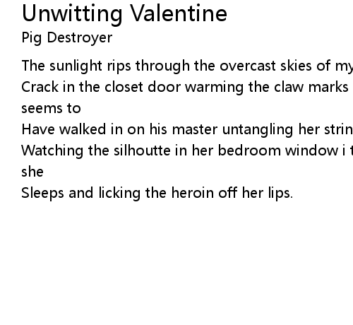 | Crack in the closet door warming the claw marks inside my eyelids the puppet seems to | |