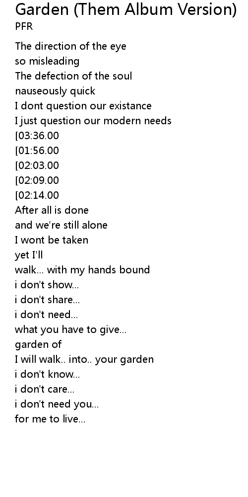 | [04:06.00] | I will walk.. into.. your garden |