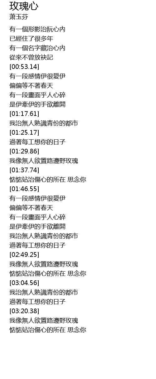 | [02:51.57] | 我像無人欲置路邊野玫瑰 |