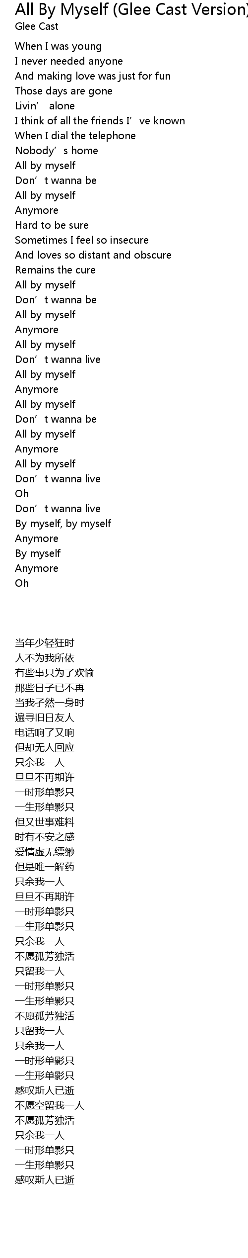 | [01:02.47] | All by myself |