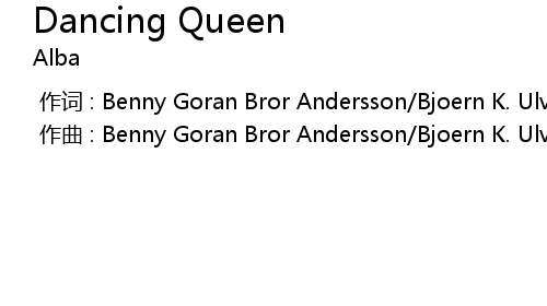 | [00:00.000] | zuò qǔ : Benny Goran Bror Andersson Bjoern K. Ulvaeus Stig Anderson |