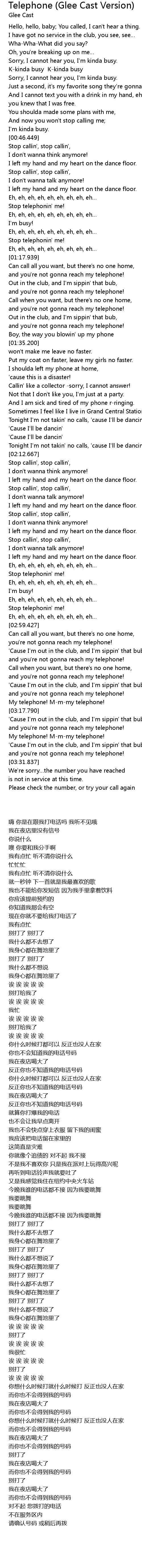 | [03:32.887] | We' re sorry the number you have reached |