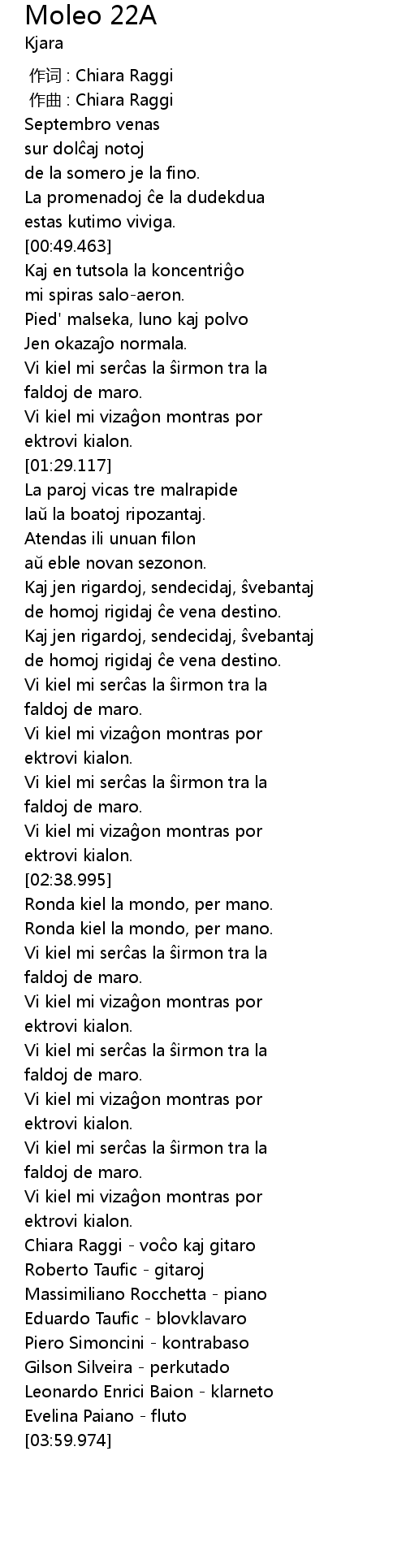 | [03:57.022] | Chiara Raggi - voĉo kaj gitaro |