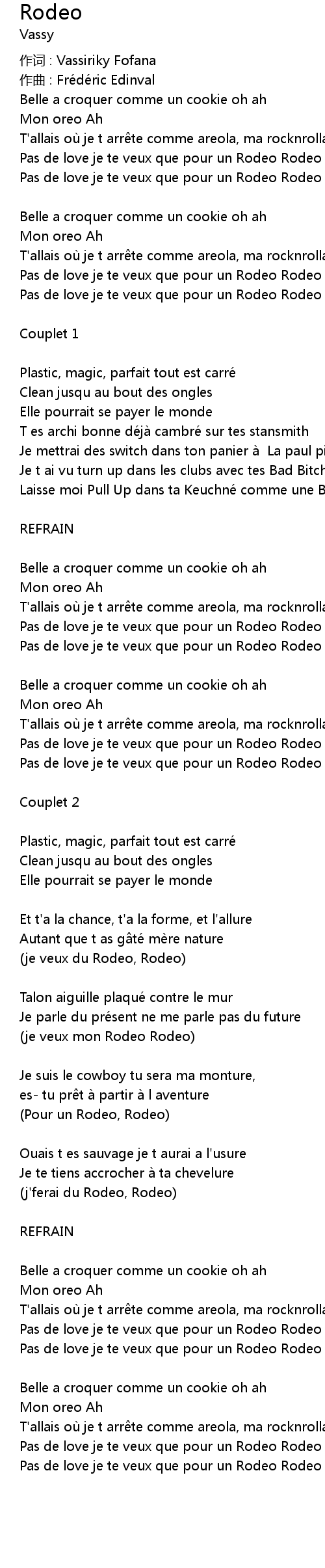 | (je veux du Rodeo, Rodeo) | |
