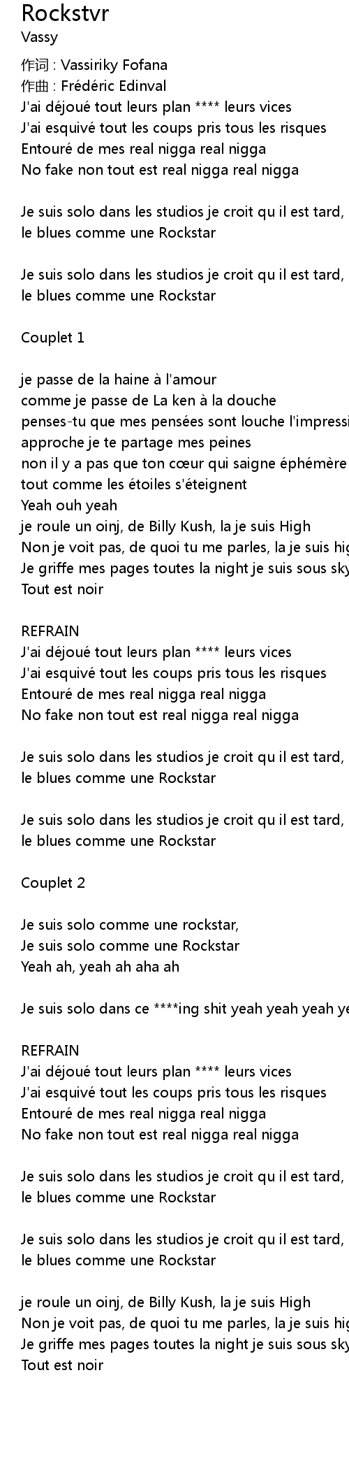 | 作词 : Vassiriky Fofana | |