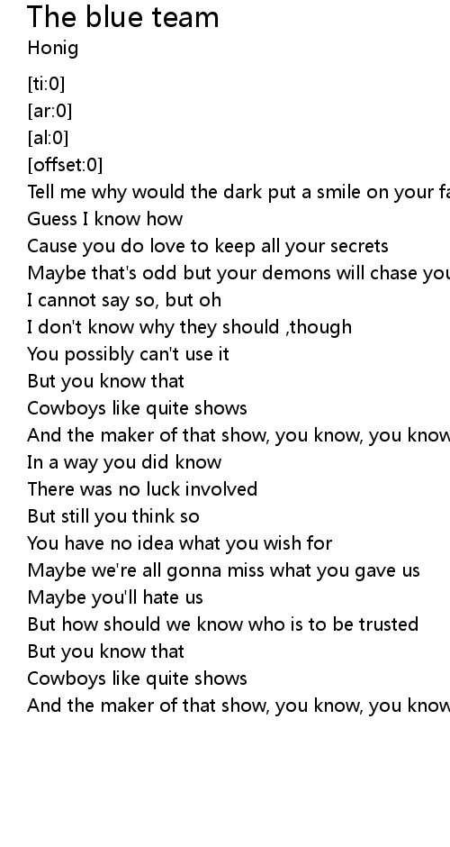 | [00:34.80] | Cowboys like quite shows |