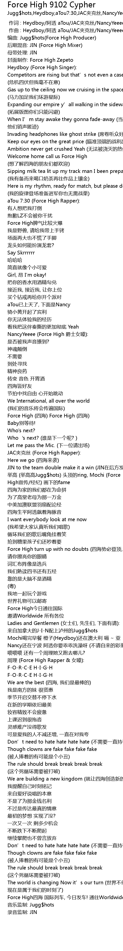 | [01:42.076] | JAC夹克丝 (Force High Rapper): |