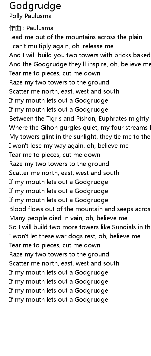 | And the Godgrudge they'll inspire, oh, believe me | |