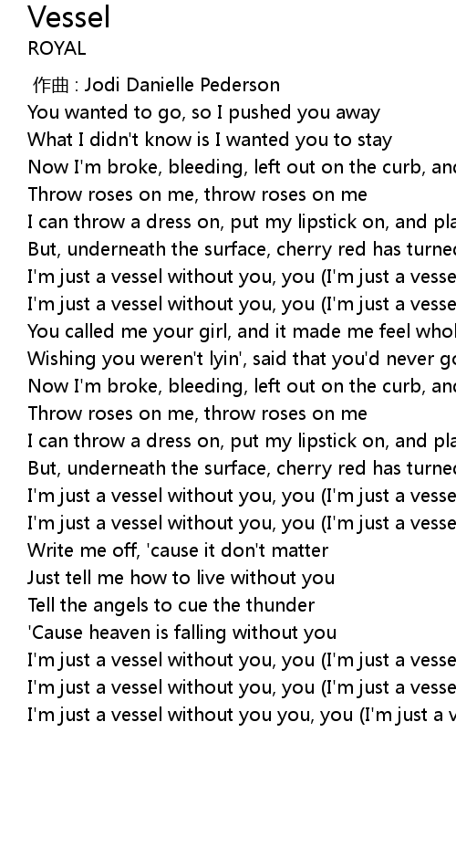 | [00:53.37] | I'm just a vessel without you, you (I'm just a vessel without you) |