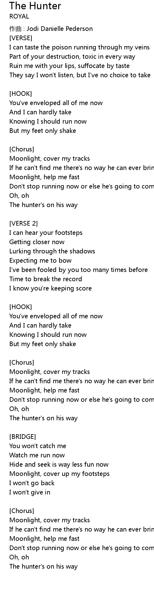 | Song | The Hunter |