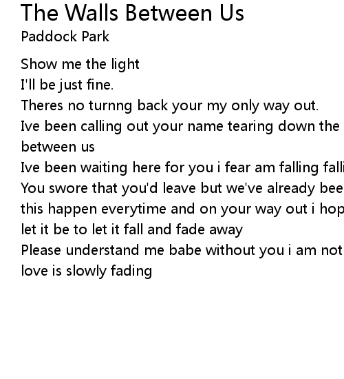 You swore that you'd leave but we've already been there baby, i swear we'll se this happen everytime and on your way out i hope you cant find a reaon there to let it be to let it fall and fade away |