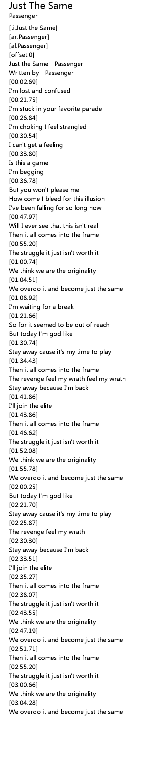 | [00:00.71] | Just the Same - Passenger |