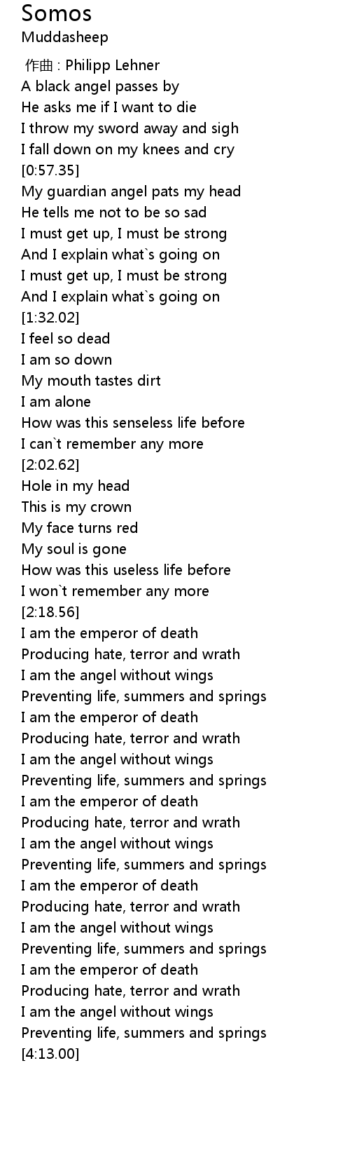 | [3:56.52] | I am the emperor of death |
