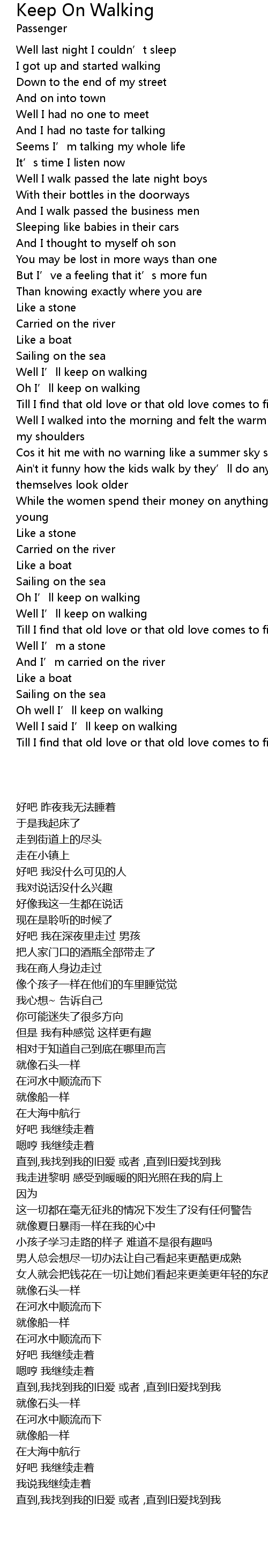 | [01:25.80] | Well I’ll keep on walking |