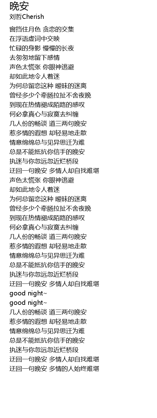 | [03:00.963] | 总是不能抵抗你信手的晚安 |