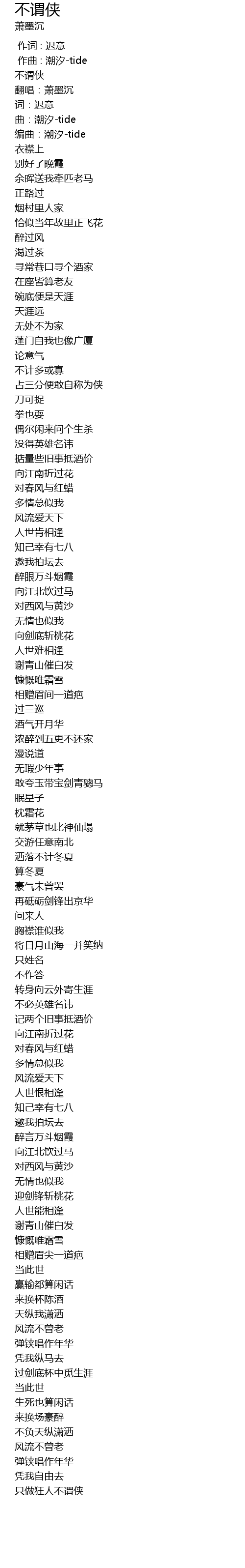 | [00:05.646] | 不谓侠 |