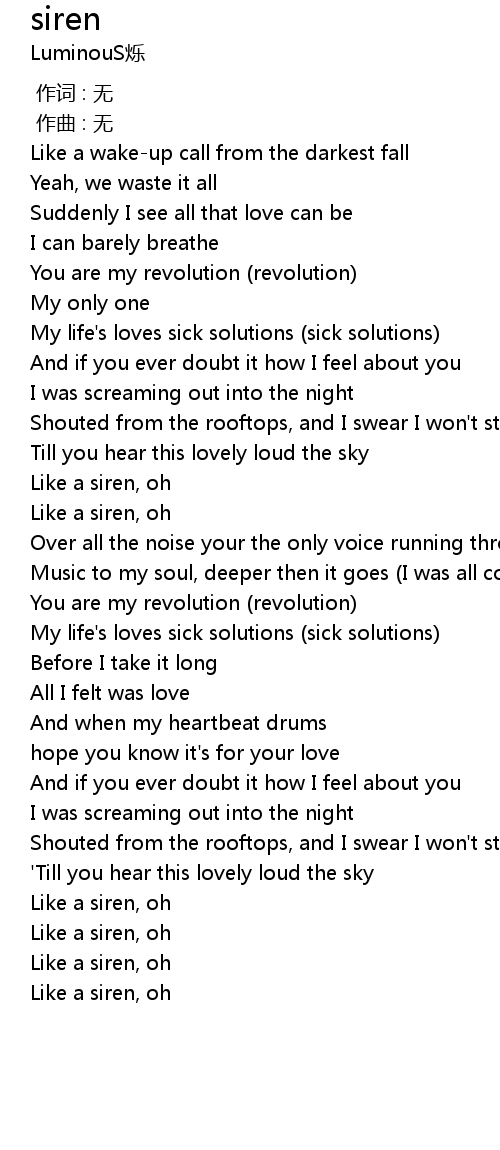| [00:58.946] | Like a siren, oh |