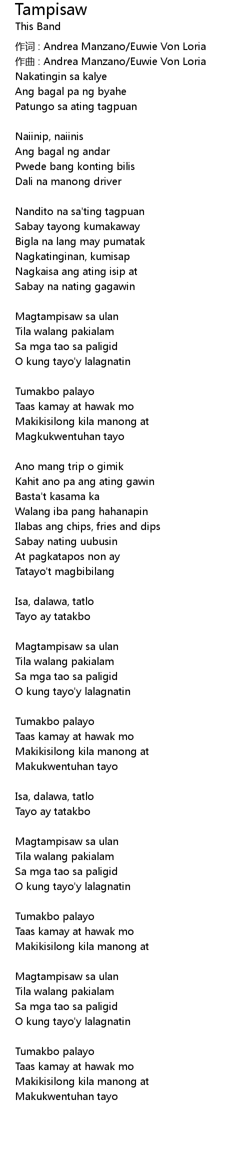 | 作词 : Andrea Manzano/Euwie Von Loria | |