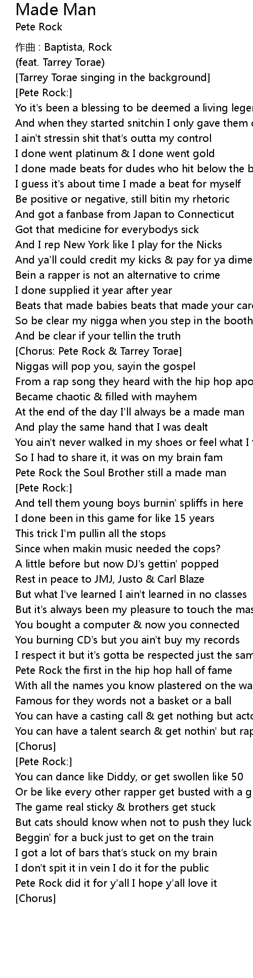 | [Chorus: Pete Rock & Tarrey Torae] | |