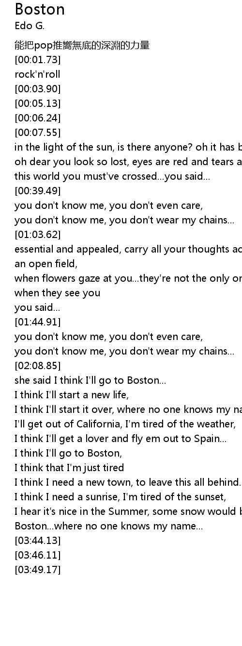| [02:09.44] | she said I think I' ll go to Boston... |