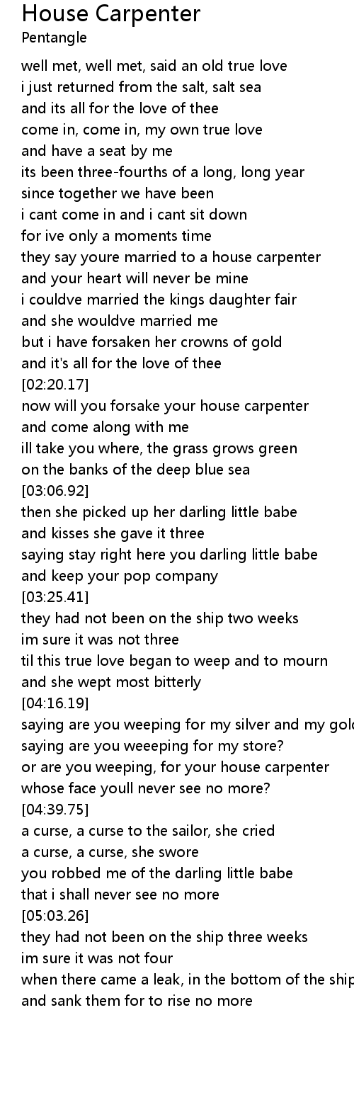 now will you forsake your house carpenter |