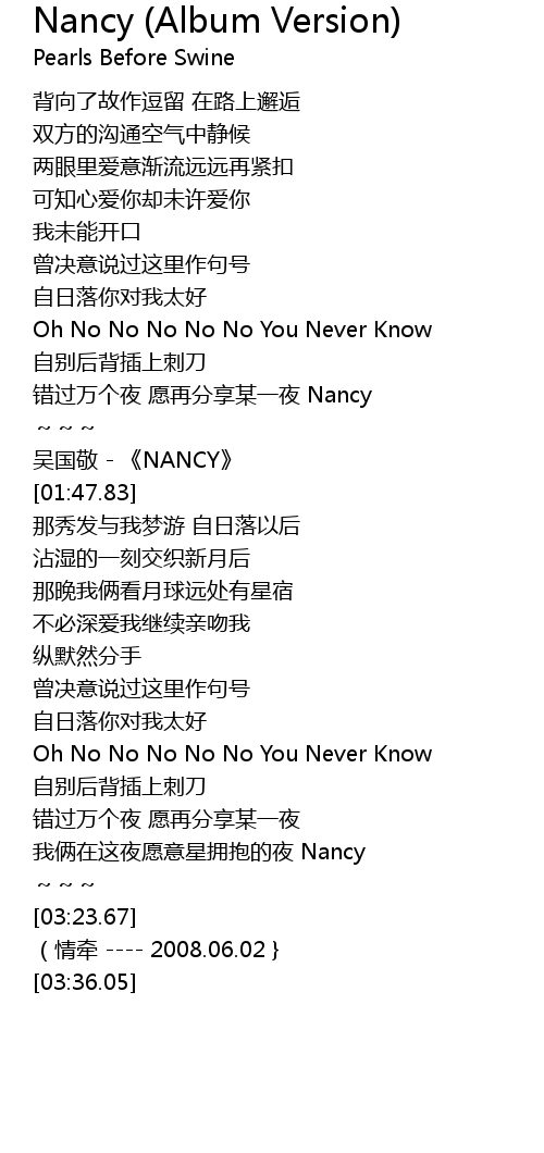 | [01:39.55] | 吴国敬 - 《NANCY》 |
