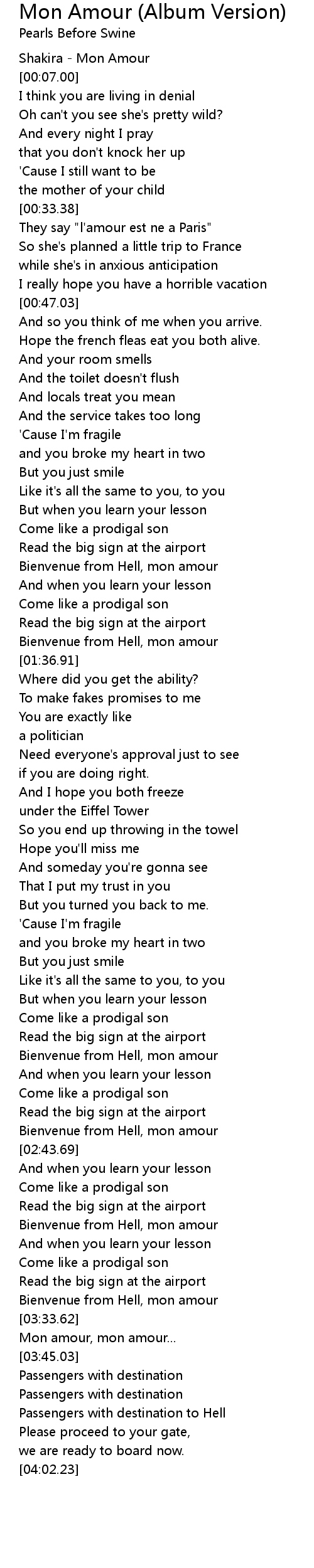 [00:00.00] Shakira - Mon Amour