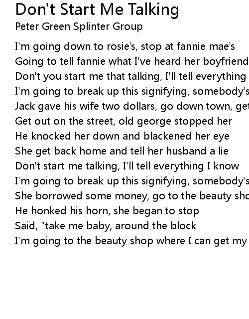 Don't start me talking, I'll tell everything I know |