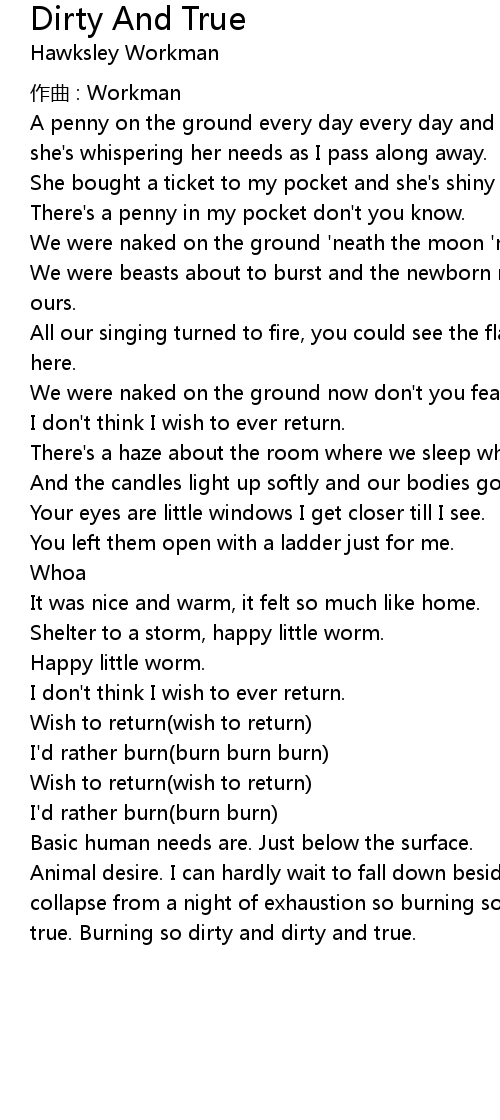 | true. Burning so dirty and dirty and true. |