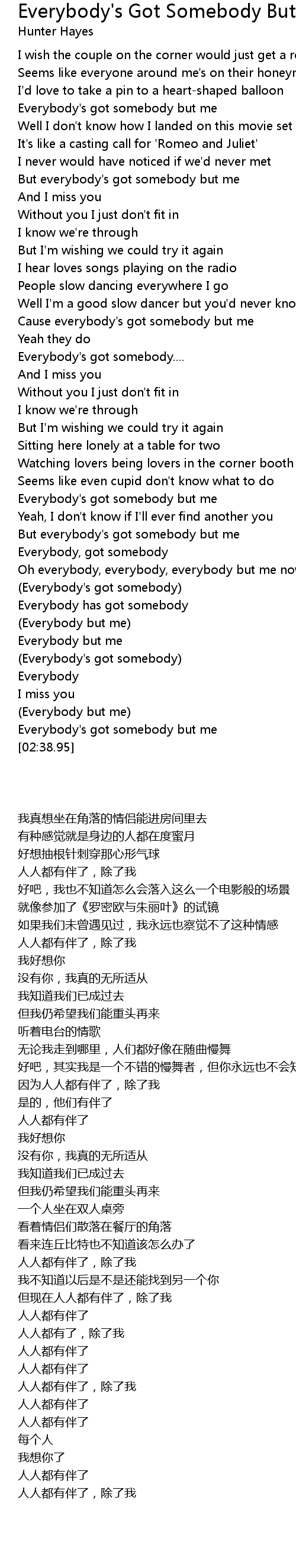 Cause everybody's got somebody but me |
