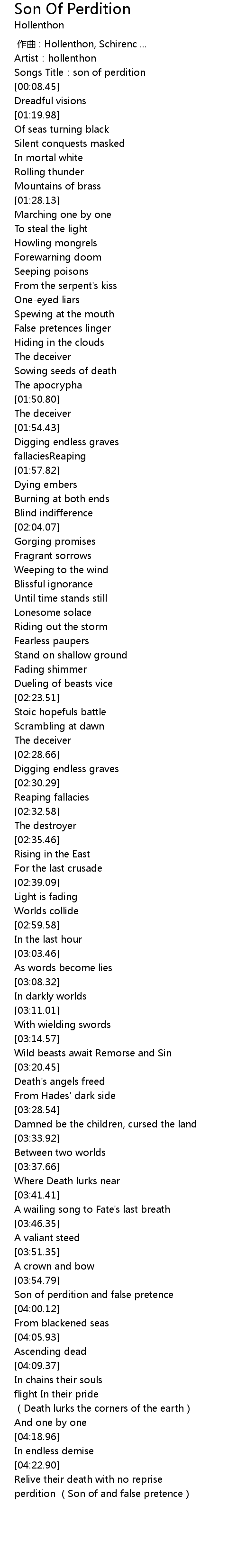 | [04:27.40] | perdition (Son of and false pretence) |