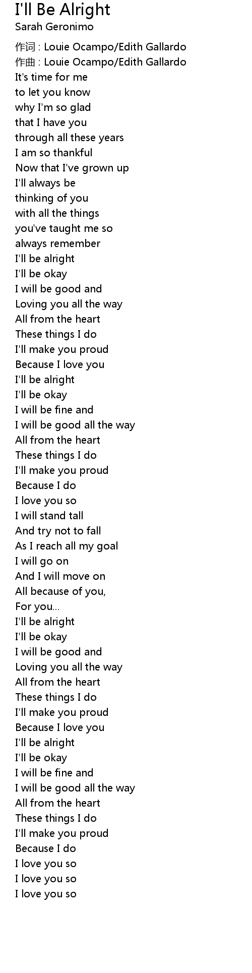 | I' ll be alright | |