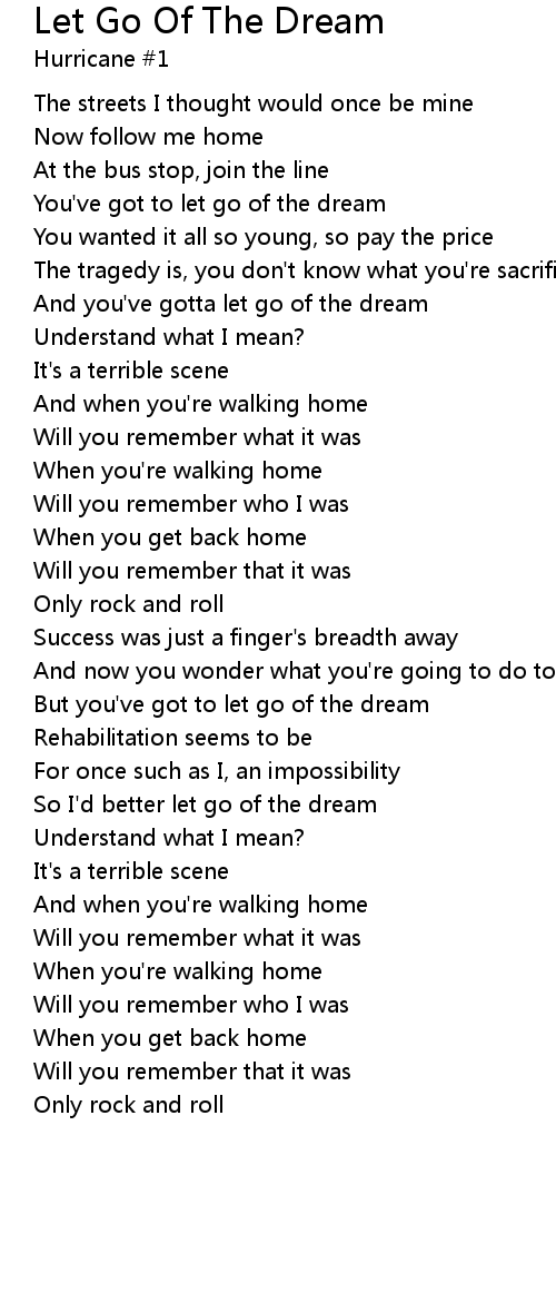 And you've gotta let go of the dream |