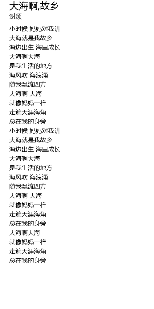 | [00:21.050] | dà hǎi jiù shì wǒ gù xiāng |