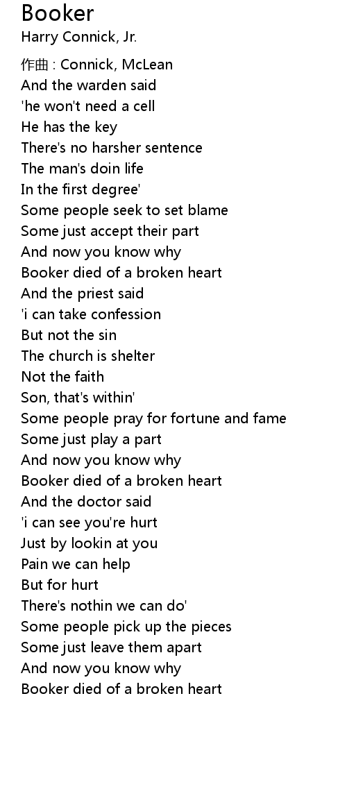 | Booker died of a broken heart | |