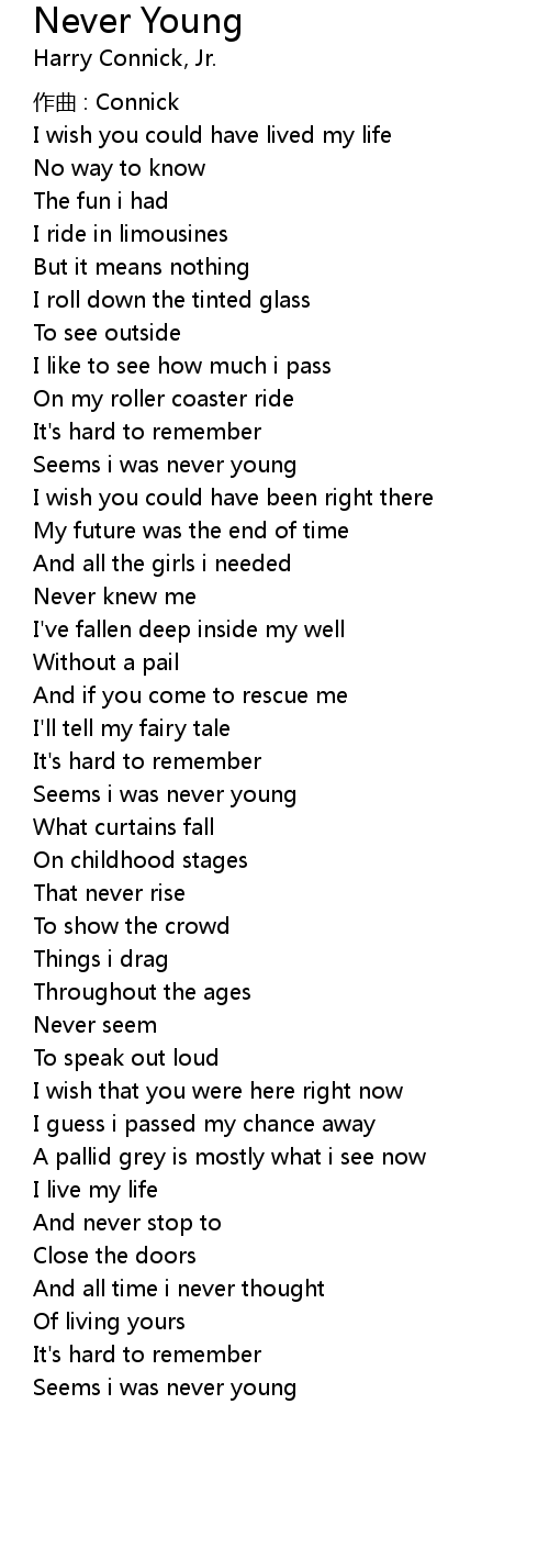 | Seems i was never young |