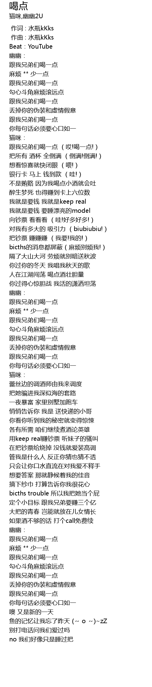 | [02:32.490] | 跟我兄弟们喝一点 |