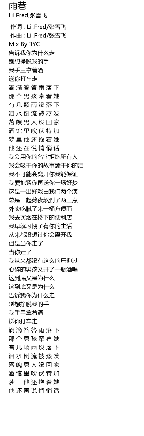 | [00:00.000] | 作词 : Lil.Fred/张雪飞 |