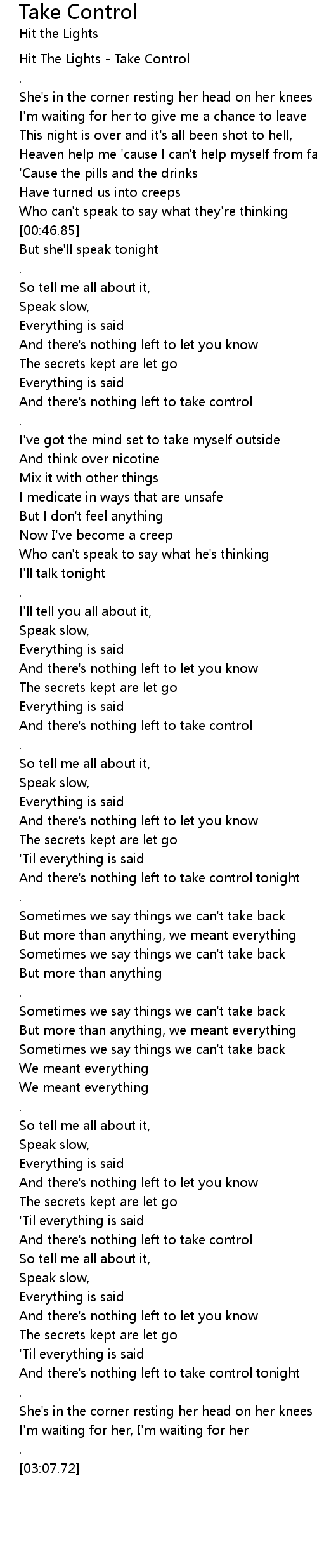 Hit The Lights - Take Control |