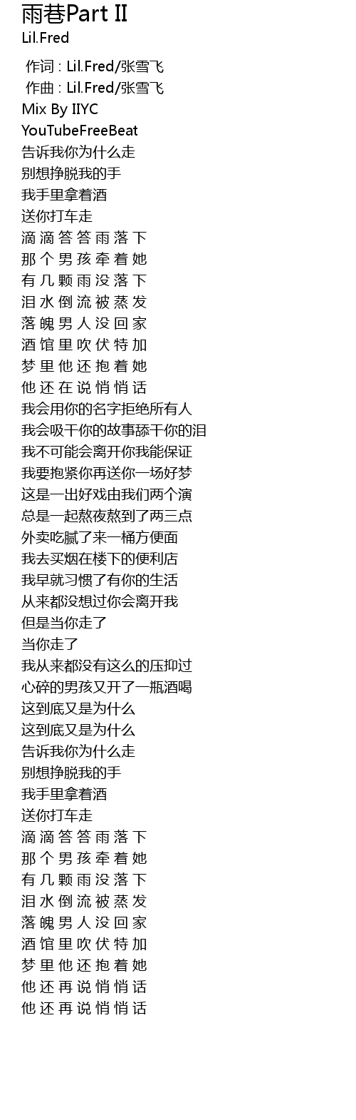 | [00:00.000] | 作词 : Lil.Fred/张雪飞 |