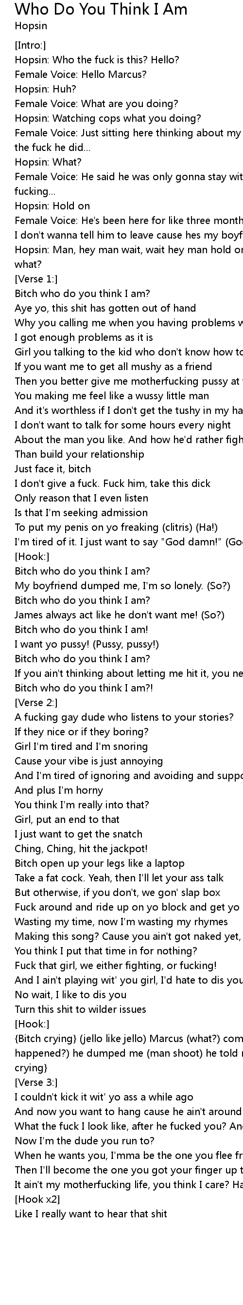 Hopsin: Man, hey man wait, wait hey man hold on a second man. Female Voice: Uh what? |