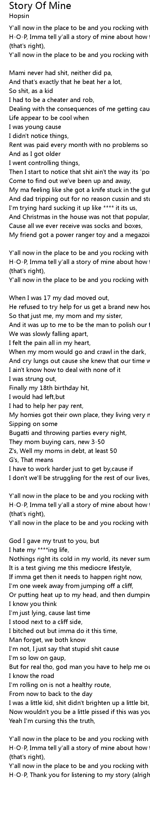 H-O-P, Pay attention closely to my story (alright) [Verse 1:] |