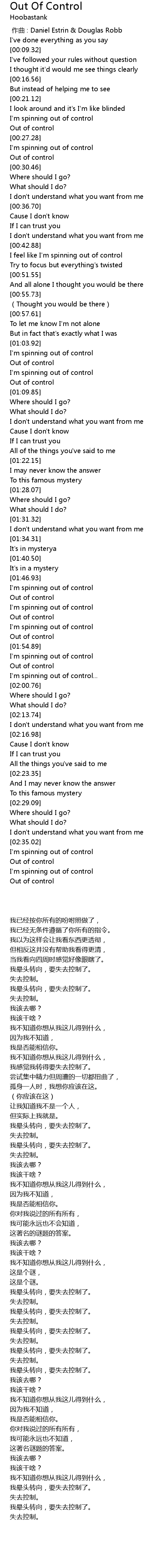 | [02:39.51] | Out of control |